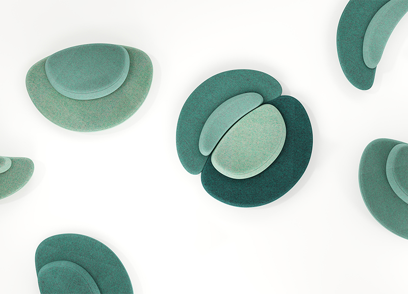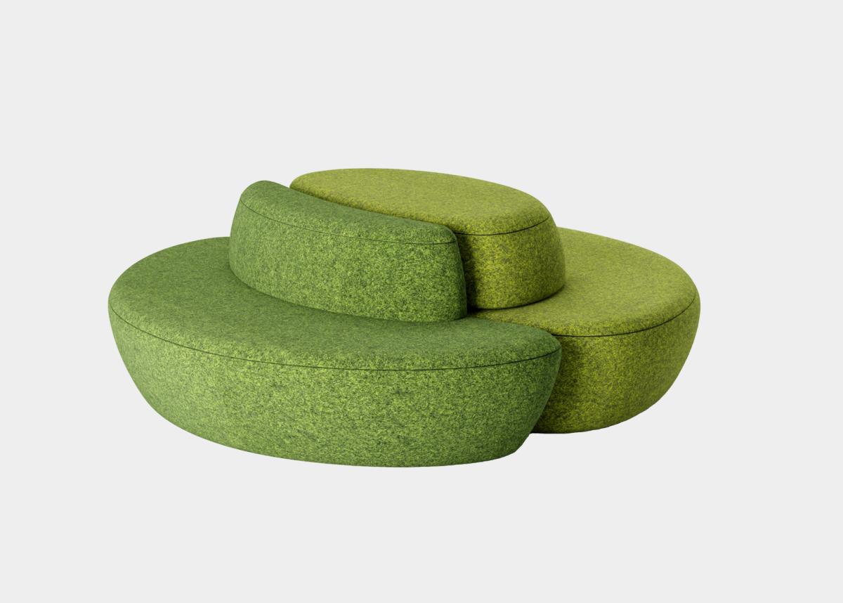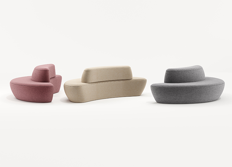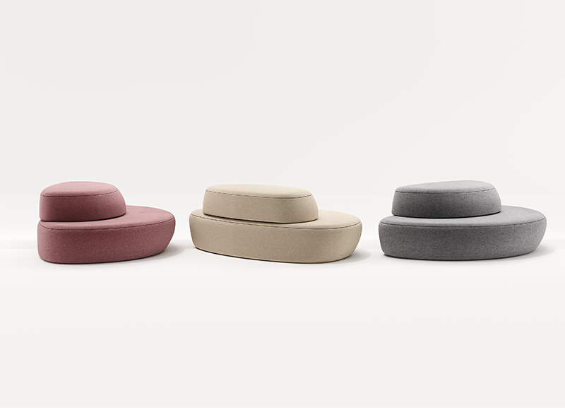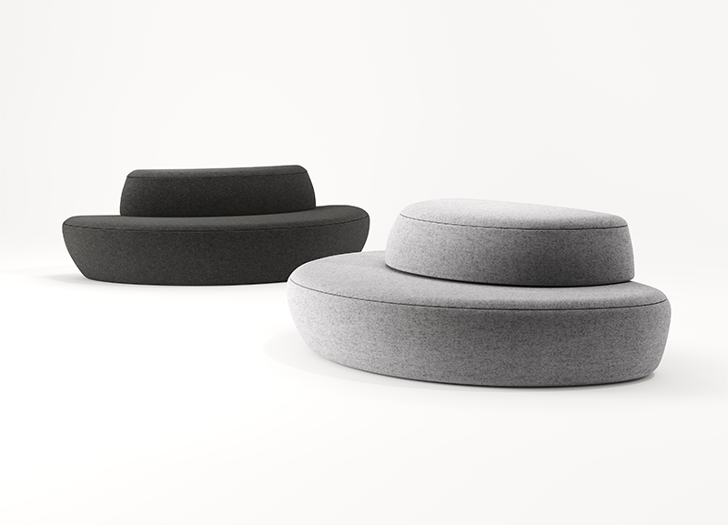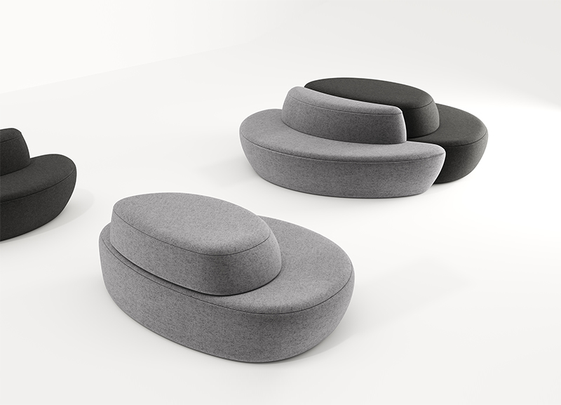 满月沙发的设计灵感是来自于月亮,借用月有盈亏的特征,将沙发分为两个不同时期的缺月形态,组合起来又形成满月,使沙发的组合更加趣味。